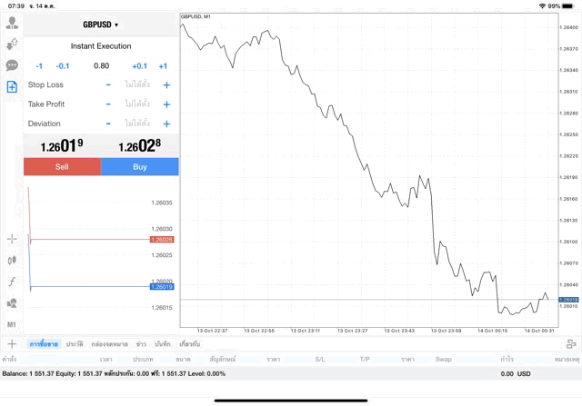 การเทรดเริ่มขึ้นทันทีหลังจากคลิ๊กปุ่ม Buy หรือ ปุ่ม Sell