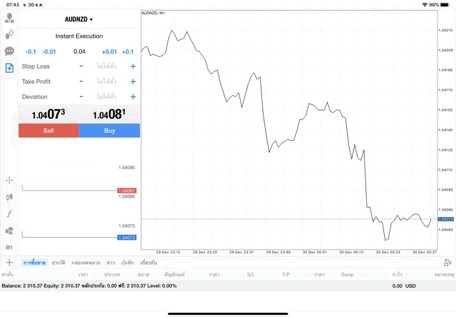 การเล่นหุ้น Forex ผ่านแอพเล่นหุ้นที่ดีที่สุด แอพเล่นหุ้น Mt4 ซื้อขายสูงสุด 200 lot ตั้งแต่ 14.00 น. – 03.59 น. และ 20 lot ตั้งแต่เวลา 04.00 น. – 13.59 น. Exness โบรกเกอร์ฟอเร็กซ์ระดับโลก การลงทุน AUDNZD 0.04 lot Leverage 1:1000 จะเริ่มขึ้นแล้ว หลังจากคลิ๊กปุ่ม Sell หรือ Buy ส่งคำสั่งเทรด การลงทุนจะเริ่มขึ้นทันที